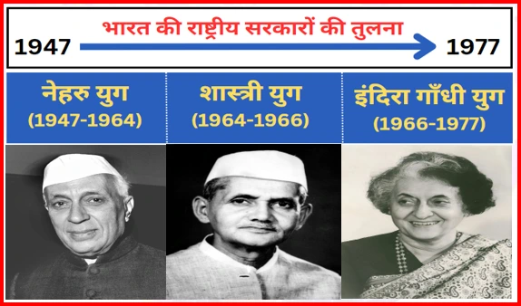 इसी प्रकार स्वतंत्र भारत की राष्ट्रीय सरकारों की तुलना एक ही शासनकाल के विभिन्न पहलुओं के सन्दर्भ में की जा सकती है। जैसे, नेहरू काल (1942-1964) अथवा इन्दिरा गाँधी (1966-1977) तथा (1980-1984)।