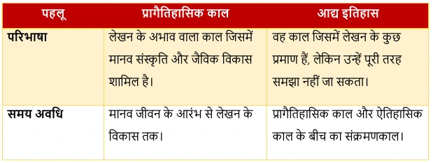 प्रागैतिहासिक काल और आद्य इतिहास के बीच अंतर