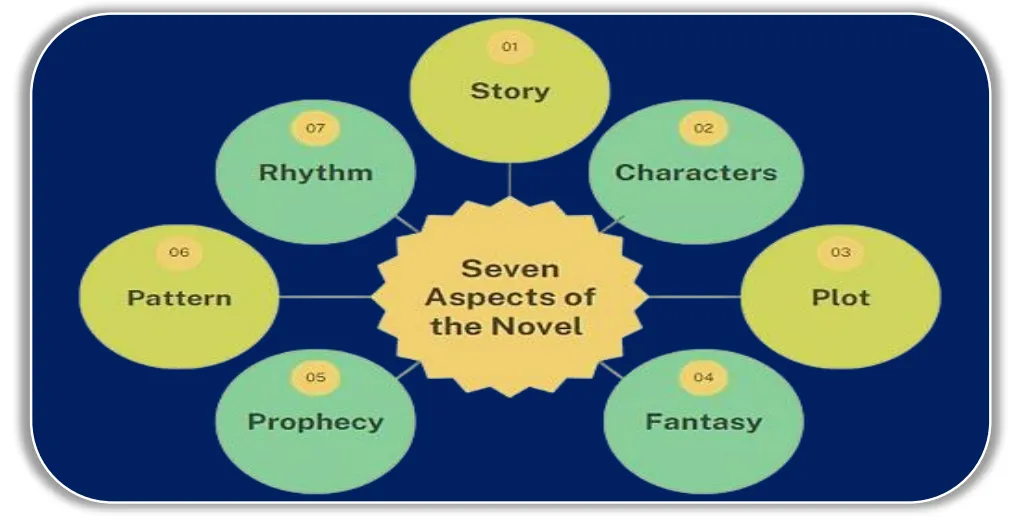The seven aspects of the novel, according to Forster, are Story, Plot, Character, Theme, Rhythm, Fantasy, and Prophecy. Each of these elements plays a significant role in shaping the novel's overall impact and enhancing readers' comprehension and appreciation of the text.