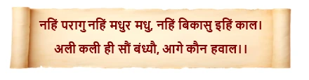 मध्यकाल के लगभग सभी कवियों की रचनाओं में भी भारतीय साहित्य और मूल्य-बोध देखने को मिलते है। उत्तर मध्यकालीन कवि बिहारीलाल को आमतौर पर श्रृंगार के कवि के रूप में जाना जाता है, लेकिन उन्होंने भी मूल्यपरक दोहों की रचना की है जो जीवन में उचित मार्ग पर चलने का रास्ता दिखाते हैं। बिहारीलाल का निम्नलिखित दोहा जिसमें वे अपने आश्रदाता महाराज जयसिंह को उचित मार्ग पर चलने की नैतिक शिक्षा दे रहे हैं-