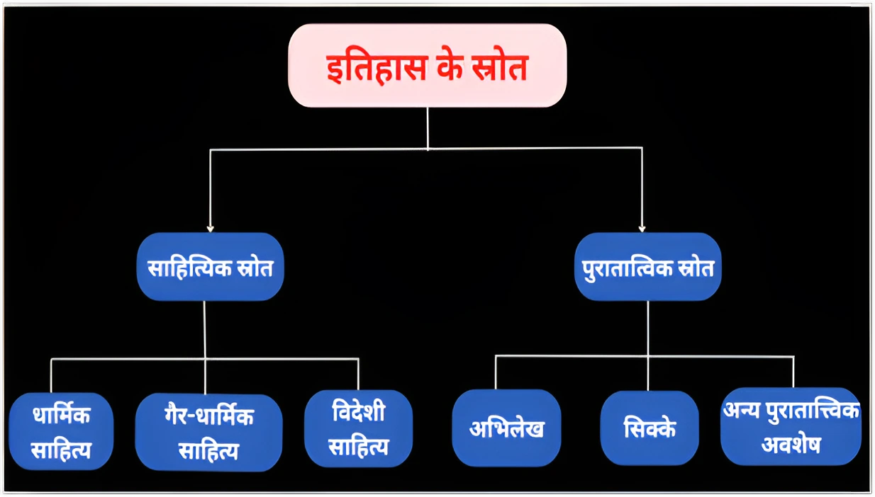 भारत के इतिहास के सन्दर्भ में सर्वाधिक स्रोत साहित्यिक स्रोत हैं। प्राचीन काल में पुस्तकें हाथ से लिखी जाती थी, हाथ से लिखी गयी इन पुस्तकों को पांडुलिपि कहा जाता है। पांडुलिपियों को ताड़पत्रों तथा भोजपत्रों पर लिखा जाता था।