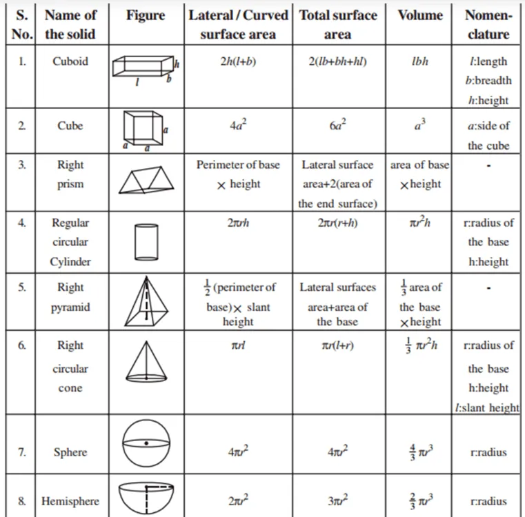 Ques 15: Mensuration all formulas?
