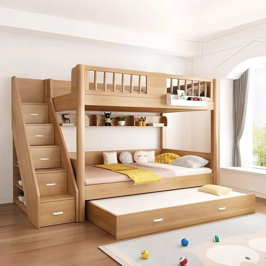 (ii) शयन क्षेत्र : शयनकक्ष में विश्राम, शयन और तैयार होने का कार्य किया जाता है। यदि शयनकक्ष छोटा है तो पलंग ऐसे बनवाये जा सकते हैं जिनके नीचे बच्चों के पलंग आ सकें और जिन्हें आवश्यकतानुसार बाहर खींचा जा सके। पलंग दीवार में लगे हुए या फोल्डिंग भी हो सकते हैं या एक के ऊपर एक (बंकनुमा) पलंग भी बनवाए जा सकते हैं। इसके अलावा, साधारण चारपाई का प्रयोग भी कर सकते हैं जिसे प्रयोग के बाद बाहर निकाला जा सकता है।