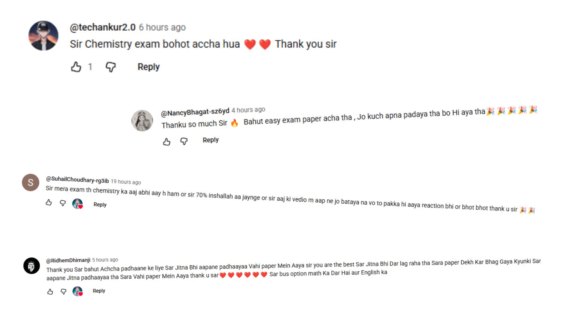 Exam के बाद students ने Manish Verma Official के YouTube channel पर जबर्दस्त positive feedback दिया।