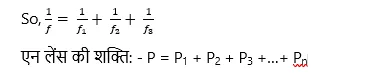 Q1. n लेंसों के संयोजन की कुल फोकस दूरी और शक्ति क्या है?