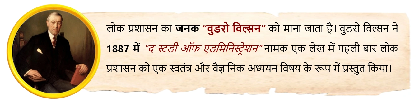 वुडरो विल्सन के अनुसार, "कानून को विस्तृत एवं क्रमबद्ध रूप से क्रियान्वित करने का नाम ही लोक प्रशासन है। कानून को क्रियान्वित करने की प्रत्येक क्रिया एक प्रशासकीय क्रिया है।"