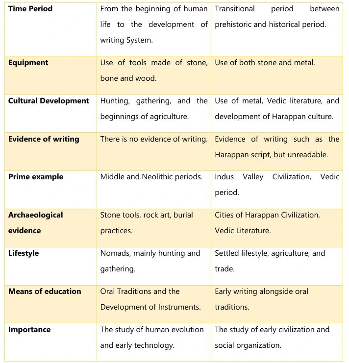 The Prehistoric Period and the Protohistoric Period represent the early stages of human history, laying the foundation for the development of civilizations. The Prehistoric Period refers to the time before the invention of writing system, while the Protohistoric Period includes societies that had some form of writing or records. These periods highlight humanity's evolution from early humans to more organized societies, offering insights into our origins and development.