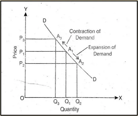 When the price decreases, there is a downward movement along the demand curve (expansion of demand). When the price increases, there is an upward movement along the curve (contraction of demand).