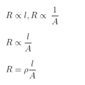 Where, R = resistance(Ω), l= legth of the conductor(in meter), A= area of cross-section in m²