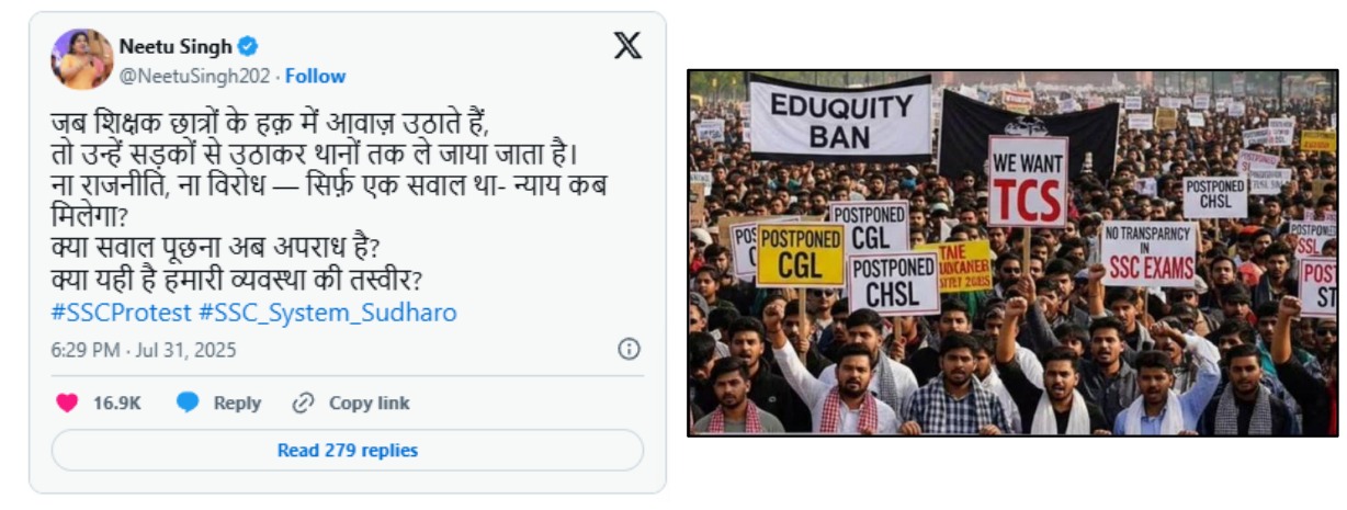 सभी ने मिलकर “चलो दिल्ली” प्रोटेस्ट किया, जहाँ #SSCVendorFailure और #SSCMisManagement पर तीखे सवाल उठाए गए।
